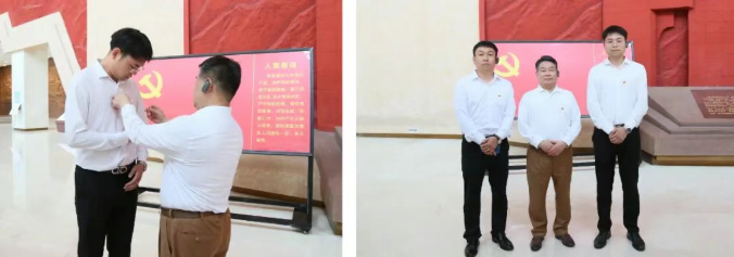活動開始,首先,集團(tuán)黨委書記吳振山為今年新入黨的兩名發(fā)展對象佩戴了黨徽,并勉勵他們時刻牢記自己的初心使命,在工作中發(fā)揮模范帶頭作用。